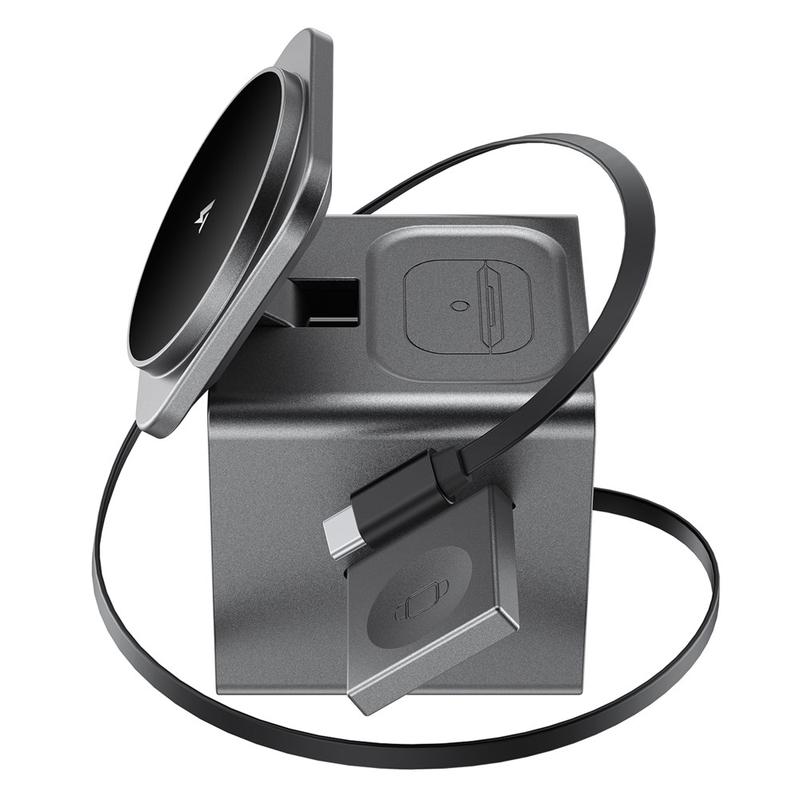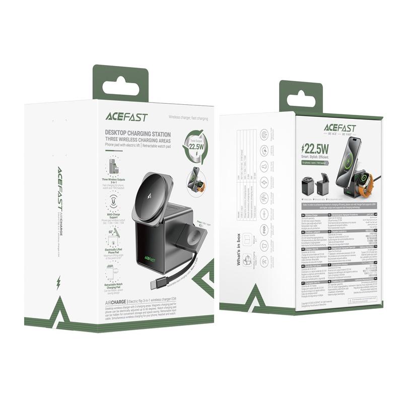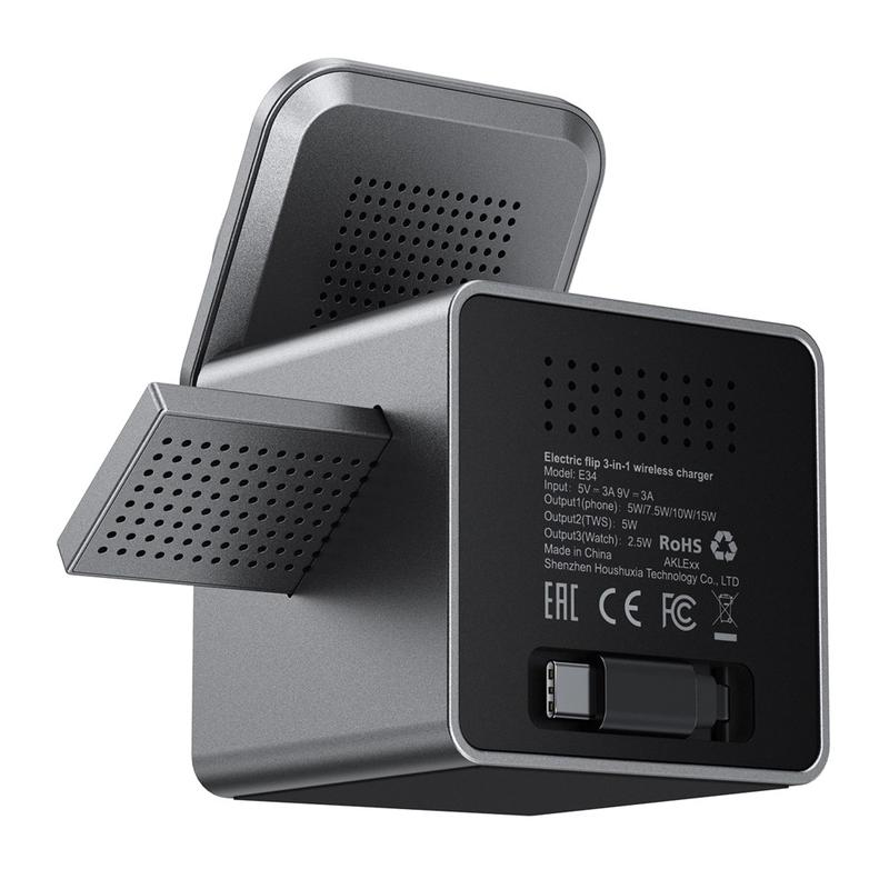 • Acefast E34 3-in-1 Magnetische kabellose Ladestation mit elektrischem Flip für Smartphone, Smartwatch & Kopfhörer - 15W, 5W, 2.5W
