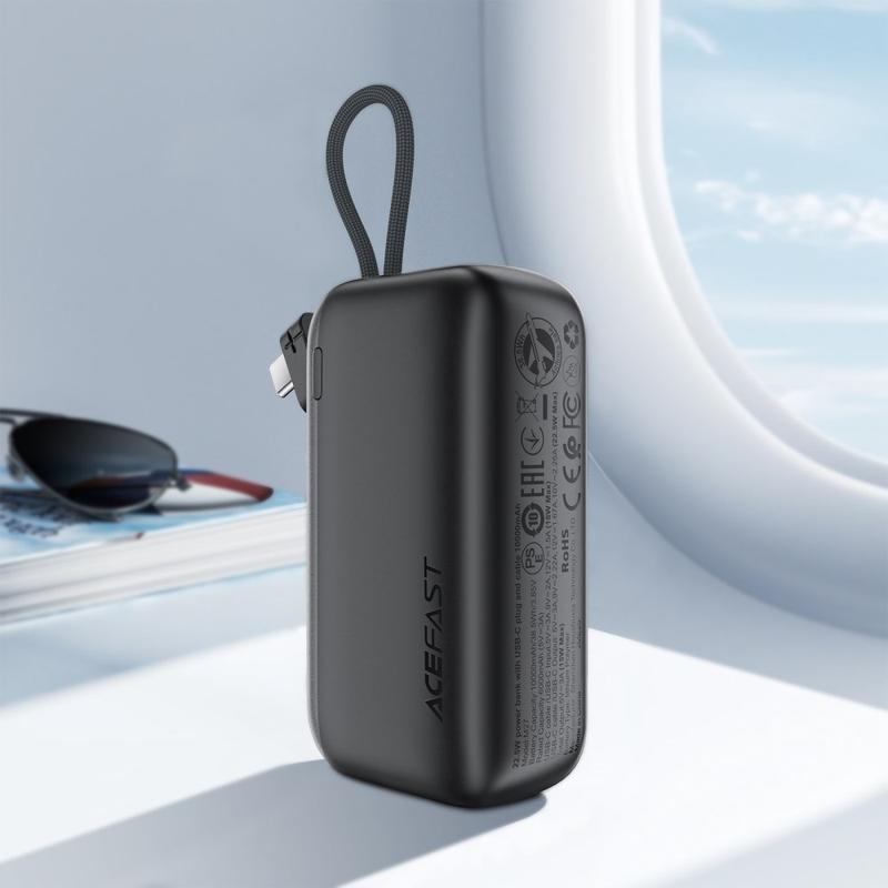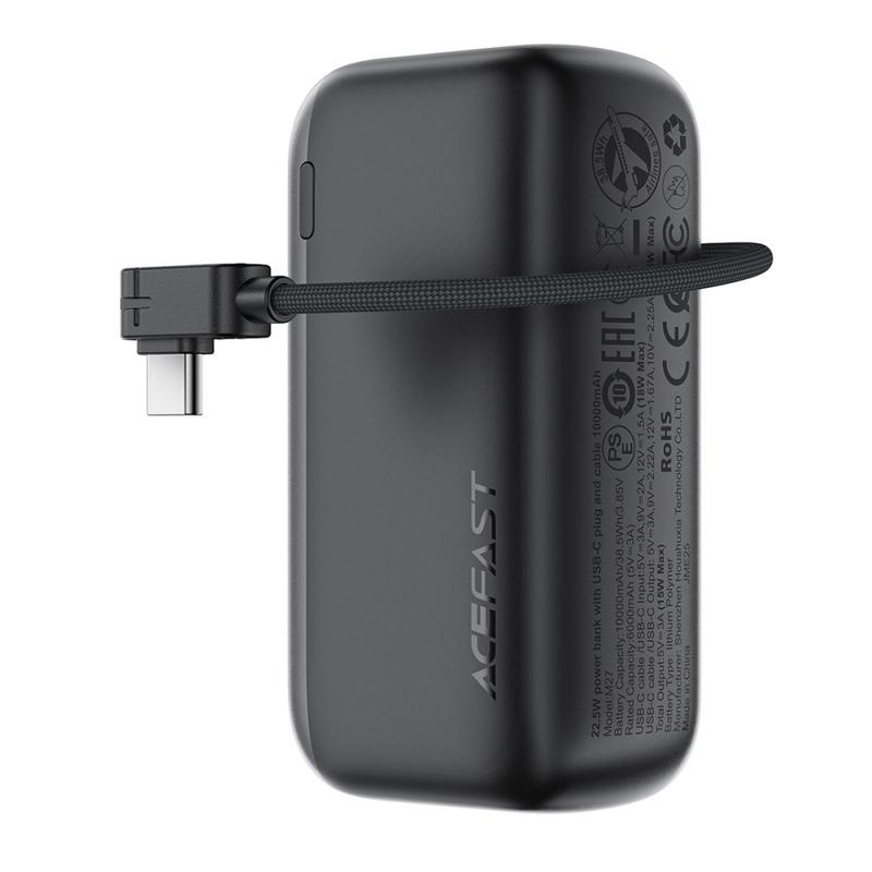 Acefast M27-10000 Mini 22.5W Schnellladung Power Bank - USB-C PD + integriertes Kabel, LED-Anzeige