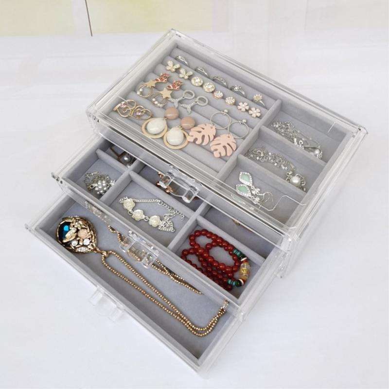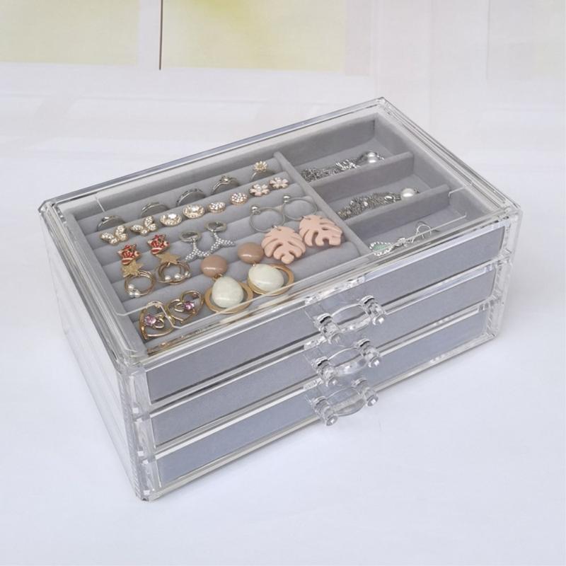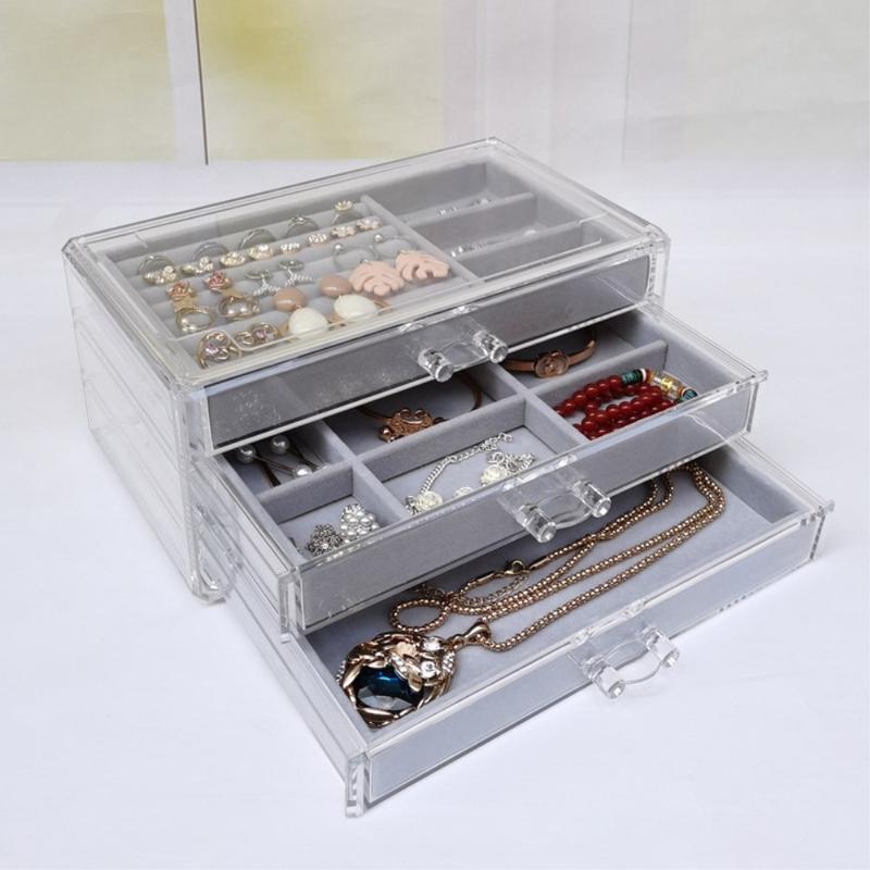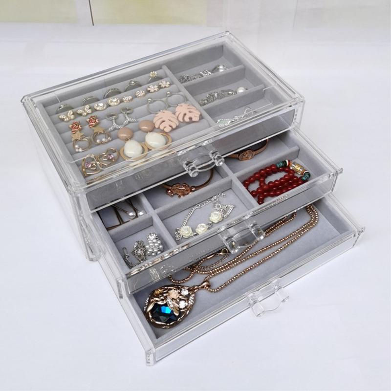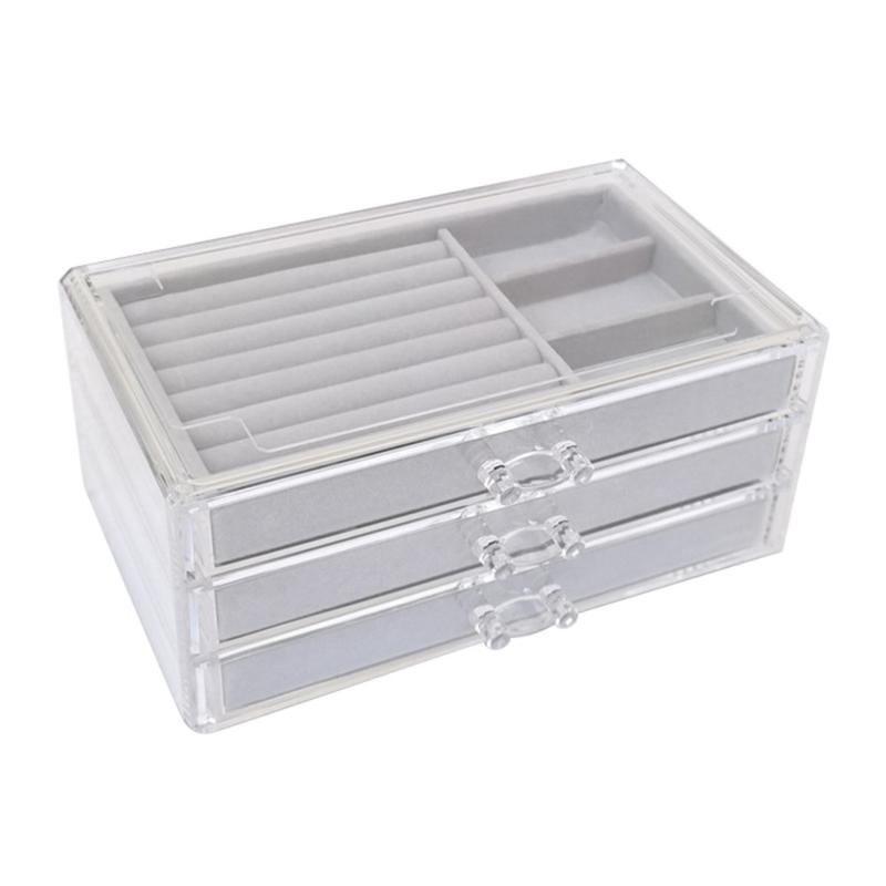 3-Layer Jewellery Organizer Box mit herausnehmbaren Fächern - samtgefütterte Acryl-Schmuckaufbewahrung für Halsketten, Ringe, Ohrringe & Makeup