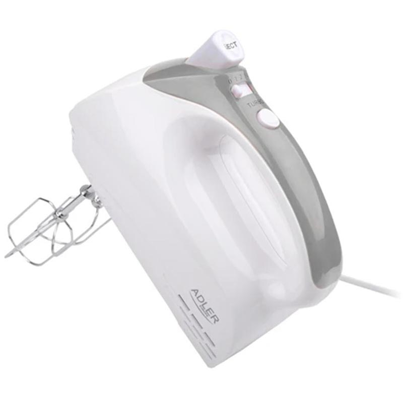 • Ein sehr praktischer 300-Watt-Mixer, der ein unverzichtbares Werkzeug für alle ist, die Kuchen und Kekse backen. 5 verschiedene Geschwindigkeiten sind möglich, je nachdem, welche Art von Speisen Sie zubereiten. So kann er sowohl zum Mischen von Mehl mit anderen Zutaten als auch zum Aufschlagen von Eiweiß verwendet werden. Bei Bedarf können Sie die TURBO-Funktion nutzen. Der Mixer ist sehr praktisch und zuverlässig und kann über einen längeren Zeitraum verwendet werden, ohne dass die Gefahr besteht, dass er kaputt geht.