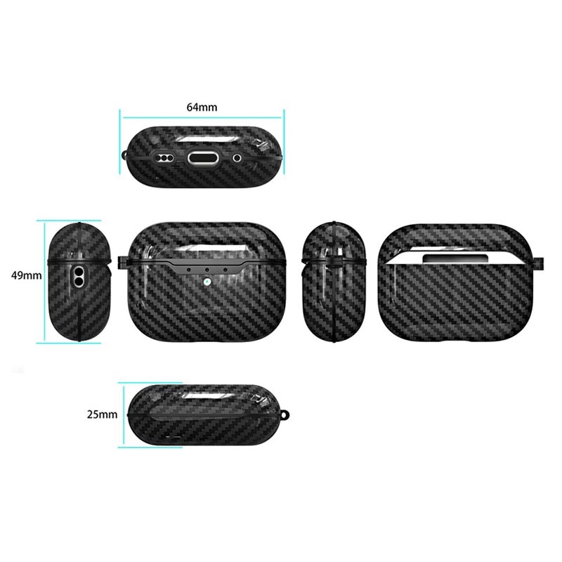 AirPods Pro 2 TPU Hülle mit Karabiner - Karbonfaser - Schwarz