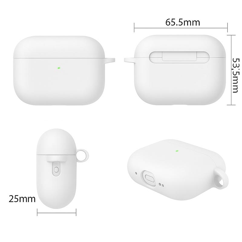 - Spezifikationen - Material: Silikon | Kompatibilität: AirPods Pro 3 | Zubehör: Tasche + Karabiner + Reinigungsstift.