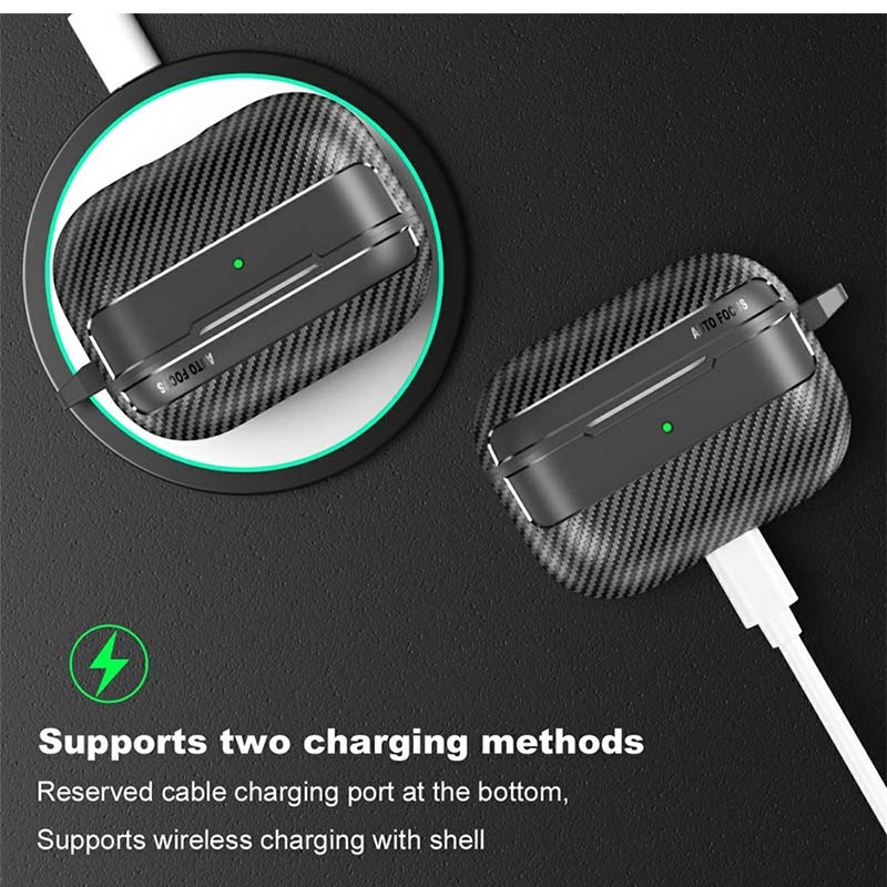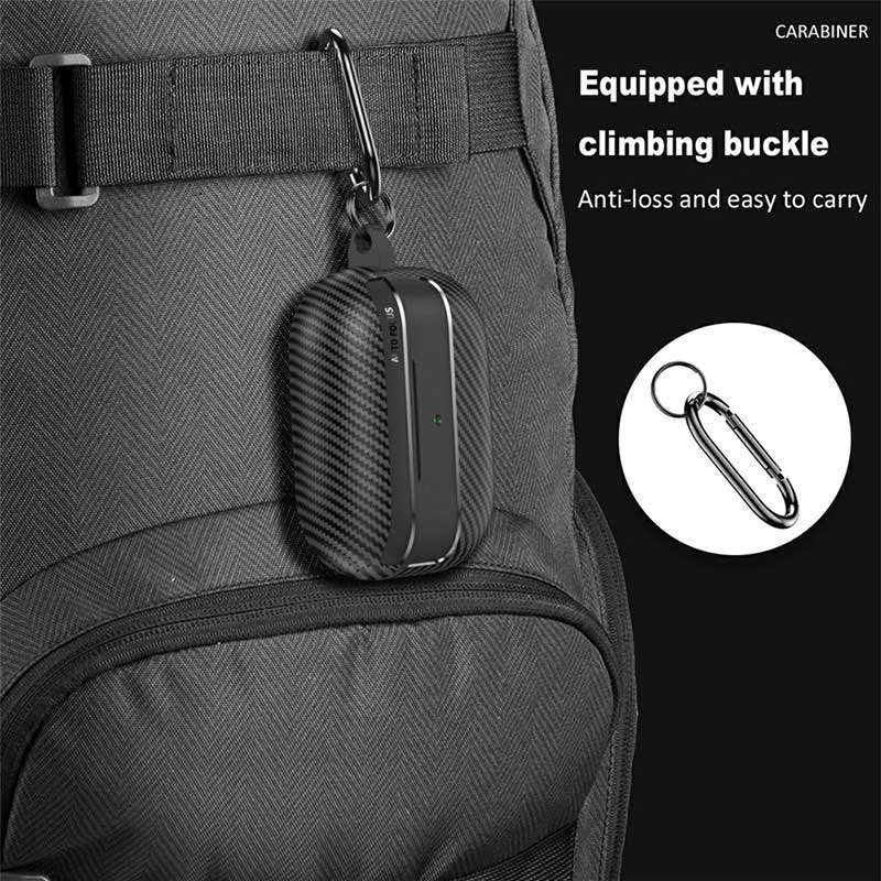 Das stoßdämpfende Material mit Karbonfaser-Textur bietet einen wesentlichen Schutz vor Stürzen und Stößen für Ihre Kopfhörer und verleiht ihnen gleichzeitig einen coolen neuen Look. Darüber hinaus verfügt diese Tasche für AirPods Pro 3 über einen praktischen Karabinerhaken zum sicheren Tragen.