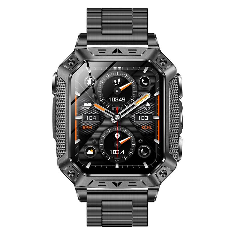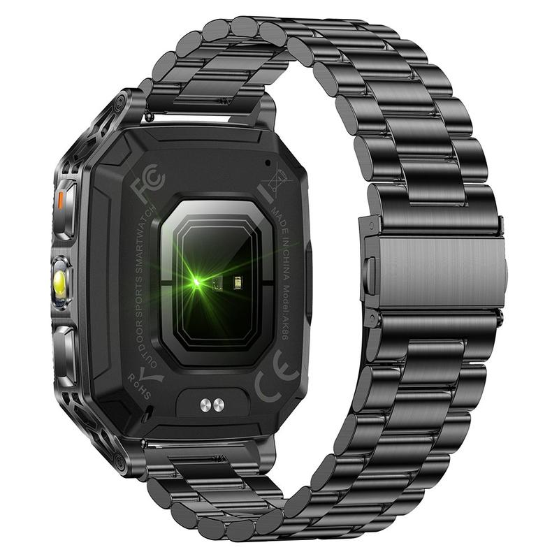 AK86 Sport-Smartwatch mit Herzfrequenz- und Blutsauerstoffmessung - Stahlarmband - Schwarz