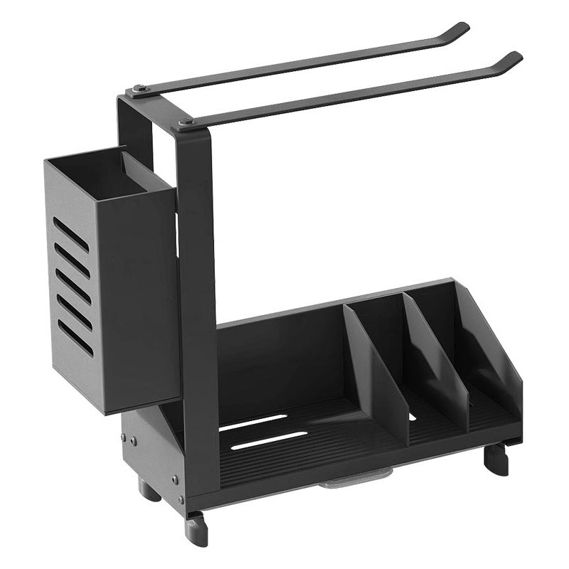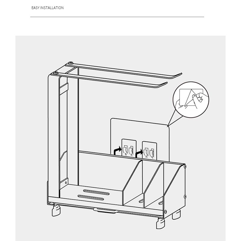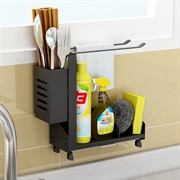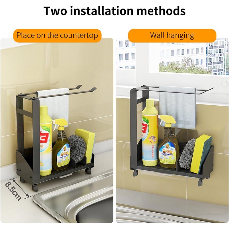 Der aus robustem Aluminium und Karbonstahl gefertigte Organizer bietet dauerhafte Stabilität und Widerstandsfähigkeit gegen tägliche Abnutzung. Er erfordert keine Installation - stellen Sie ihn einfach auf die Arbeitsplatte oder hängen Sie ihn auf, wenn Sie ihn brauchen. Durch seine kompakte Struktur passt er in die meisten Spülbecken und ist somit eine ideale Ergänzung für Küchen, Waschbecken und kompakte Wohnräume.