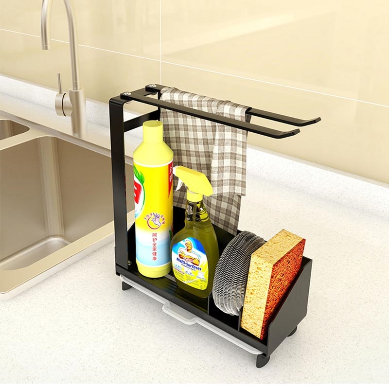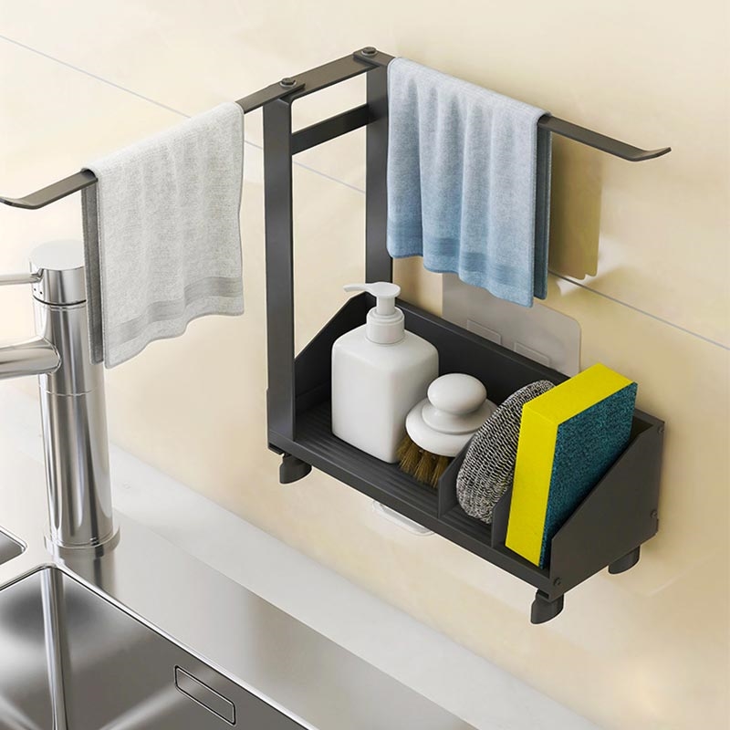 - Mehrschichtiges Design zur geordneten Aufbewahrung von Schwämmen, Spülbürsten, Seife und Schrubbern
