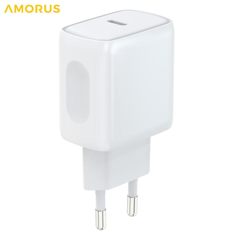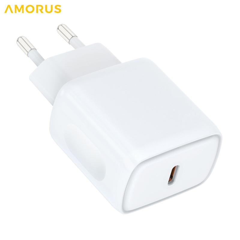 Amorus PD 20 W USB-C Schnellladegerät für die Wand – Intelligenter Netzadapter mit PPS, feuerfestes Design – EU-Stecker