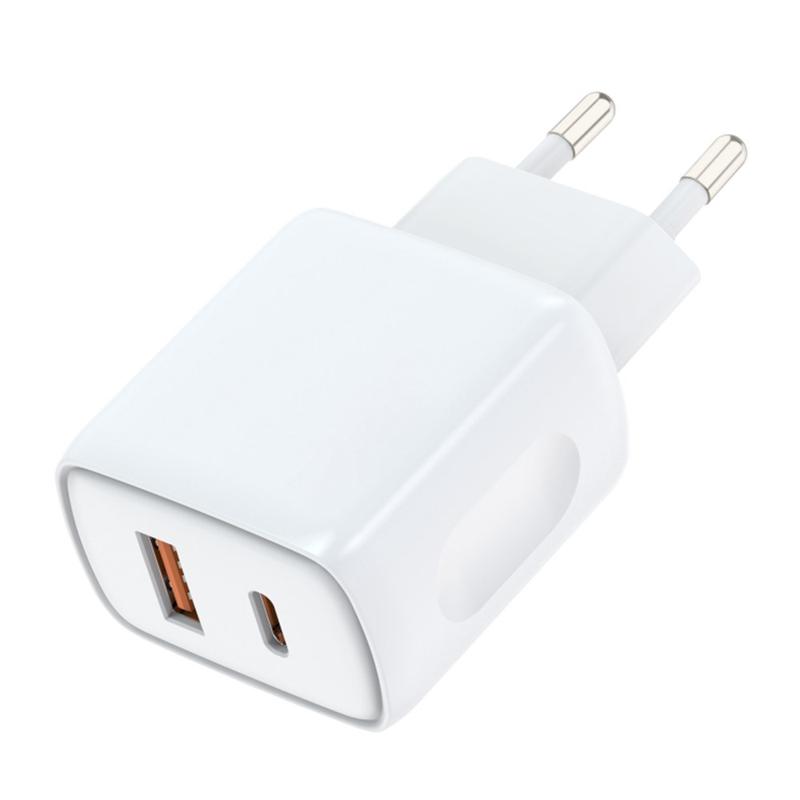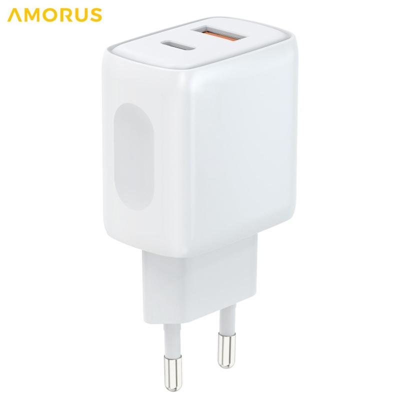 Amorus PD Schnellladegerät für die Wandmontage – Dual-Port USB-C 20 W + USB-A 18 W Smart-Netzteil – EU-Stecker