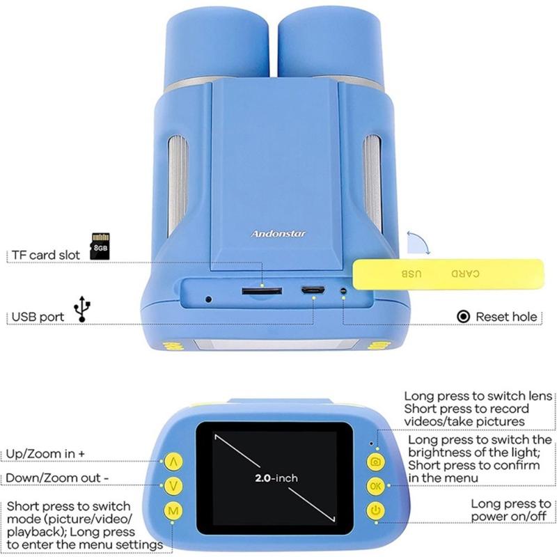 Das ANDONSTAR AD122 ist ein innovatives 2-in-1-Kindermikroskop und -teleskop, das die Neugierde der Kinder weckt und sie zum Forschen anregt. Dank des Doppellinsensystems können Kinder mit dem Mikroskopobjektiv winzige Details untersuchen und mit dem Teleskopobjektiv weit entfernte Objekte betrachten - und das alles über ein sicheres, integriertes 2-Zoll-HD-Display. Das leichte, tragbare und mit einem wiederaufladbaren 900-mAh-Akku ausgestattete digitale Fernglas eignet sich perfekt für Outdoor-Abenteuer, wissenschaftliche Projekte und alltägliche Entdeckungen.