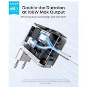 Das Anker 100W GaN-Ladegerät mit Smart-Display ist eine leistungsstarke und kompakte Ladelösung für Nutzer, die mehrere Geräte gleichzeitig schnell und effizient aufladen möchten. Mit 2 USB-C-Anschlüssen, 1 USB-A-Anschluss, fortschrittlicher GaN-Technologie und einem integrierten Digitaldisplay bietet es Ihnen eine intelligentere und bequemere Möglichkeit, Laptops, Smartphones, Tablets, Ohrhörer und andere Alltagsgeräte mit Strom zu versorgen.