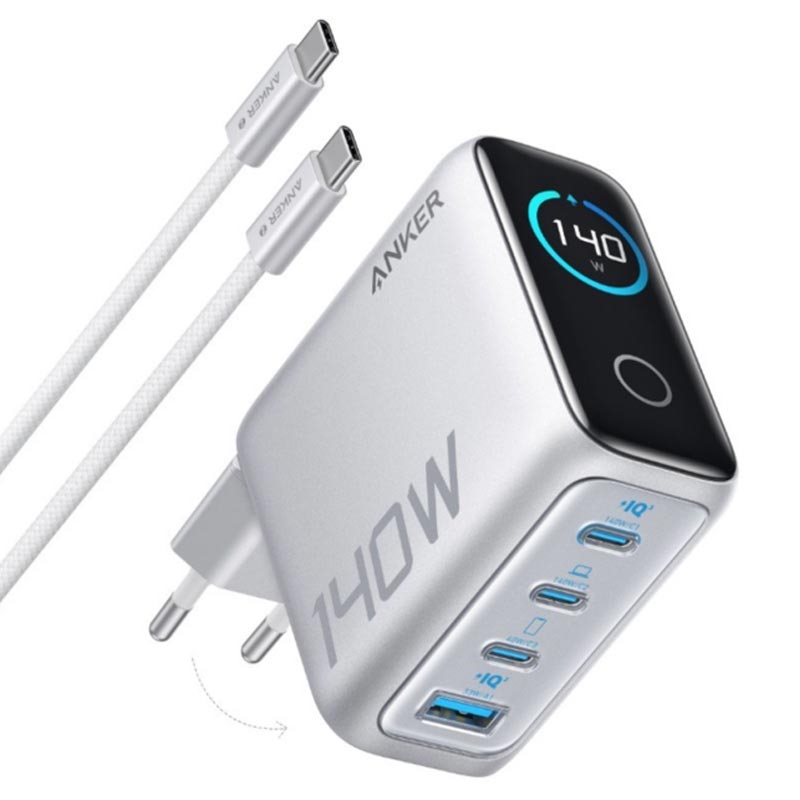 Anker Zolo 140W GaN Desktop-Ladegerät - 3 x USB-C & 1 x USB-A Hub mit Smart Touch Display, faltbaren Stiften & 8-Schicht-Sicherheit