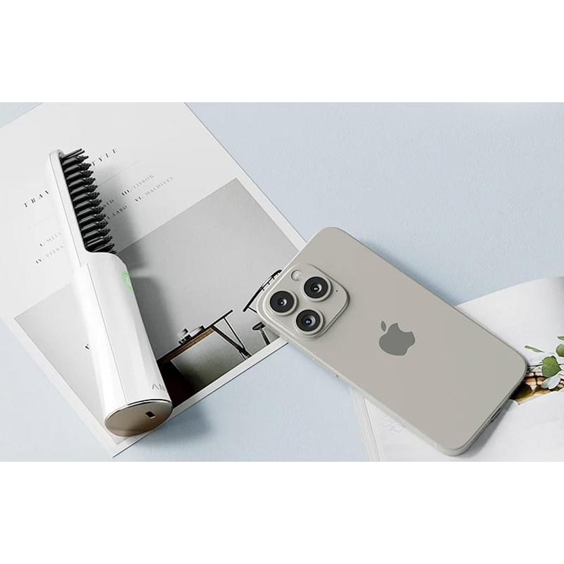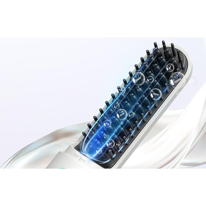 Bändigen Sie morgendliches Kräuseln und verleihen Sie Ihrem Haar in einem Durchgang natürlichen Glanz. Diese kabellose Bürste setzt einen Strom negativer Ionen frei, während ihre Keramikzähne durch die Strähnen gleiten und das Haar geschmeidig, frei von statischer Aufladung und streichelzart machen - egal, ob Sie zu Hause, in der Umkleidekabine des Fitnessstudios oder auf dem Weg zum Zug sind.
