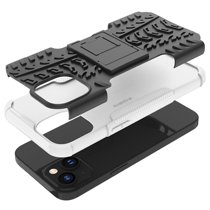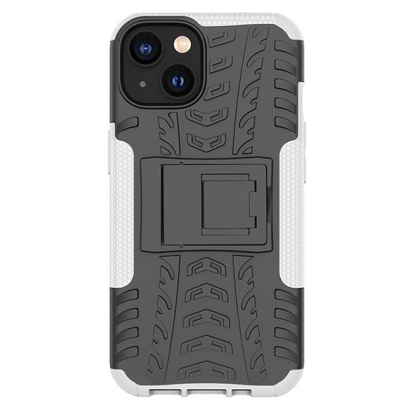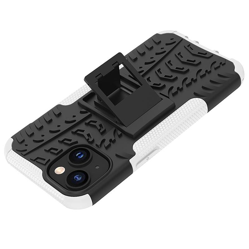 Anti-Rutsch iPhone 14 Plus Hybrid Hülle mit Ständer - Weiß / Schwarz