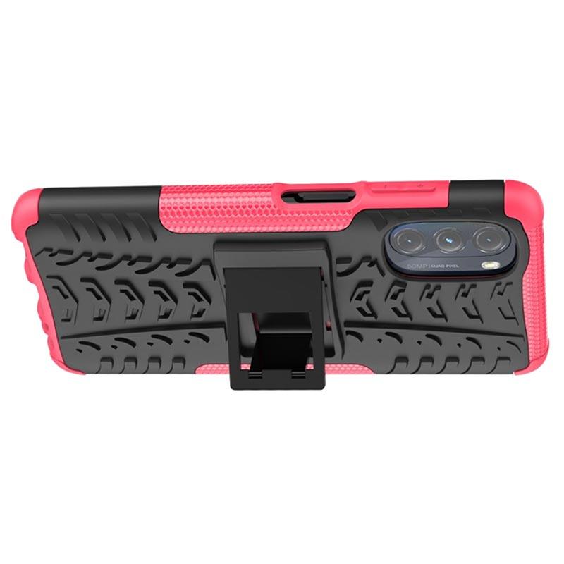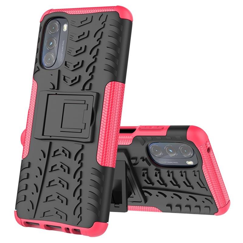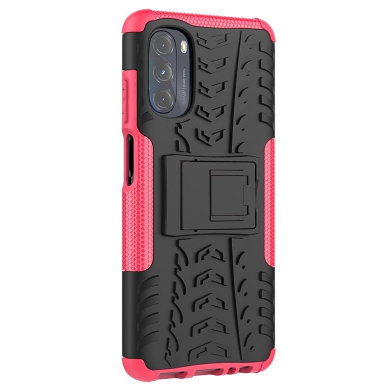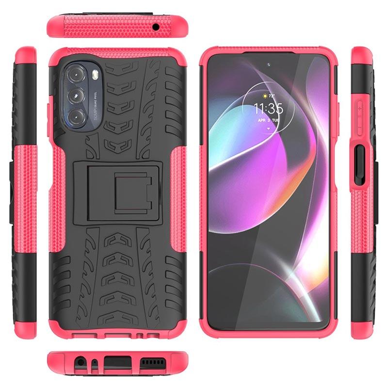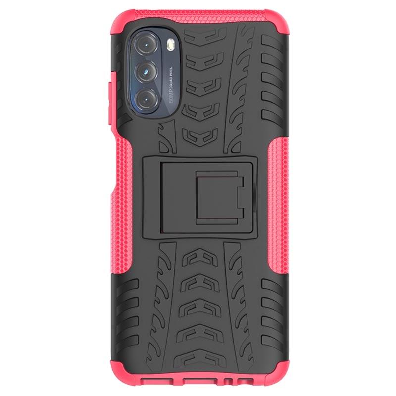 Anti-Rutsch Motorola Moto G (2022) Hybrid Hülle mit Ständer - Hot Pink / Schwarz