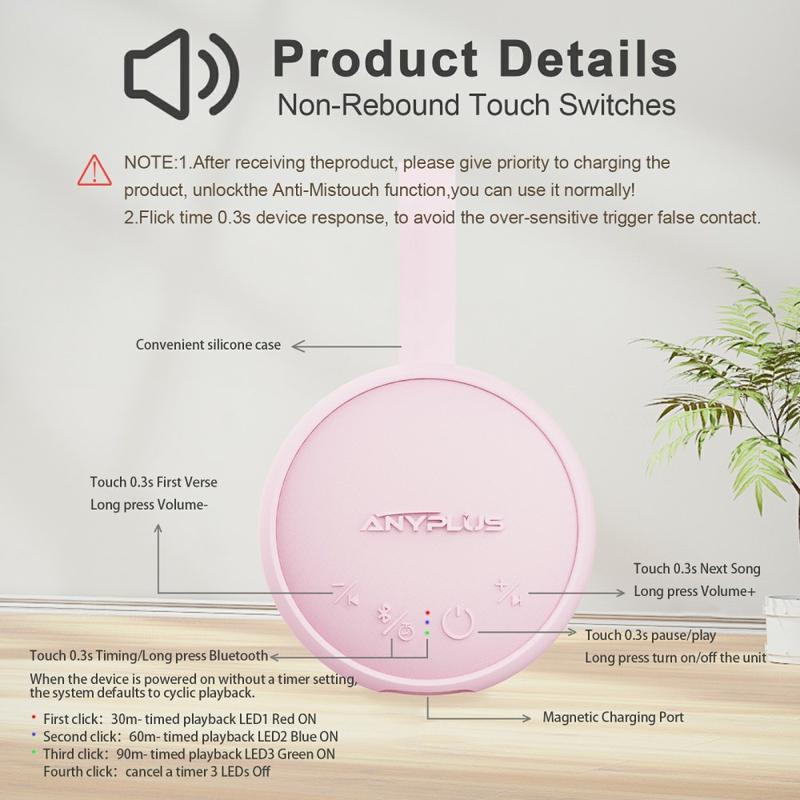 • AnyPlus Tragbare Maschine mit weißem Rauschen für Baby schlafen / Schlafhilfe Sound Machine mit Bluetooth-Lautsprecher