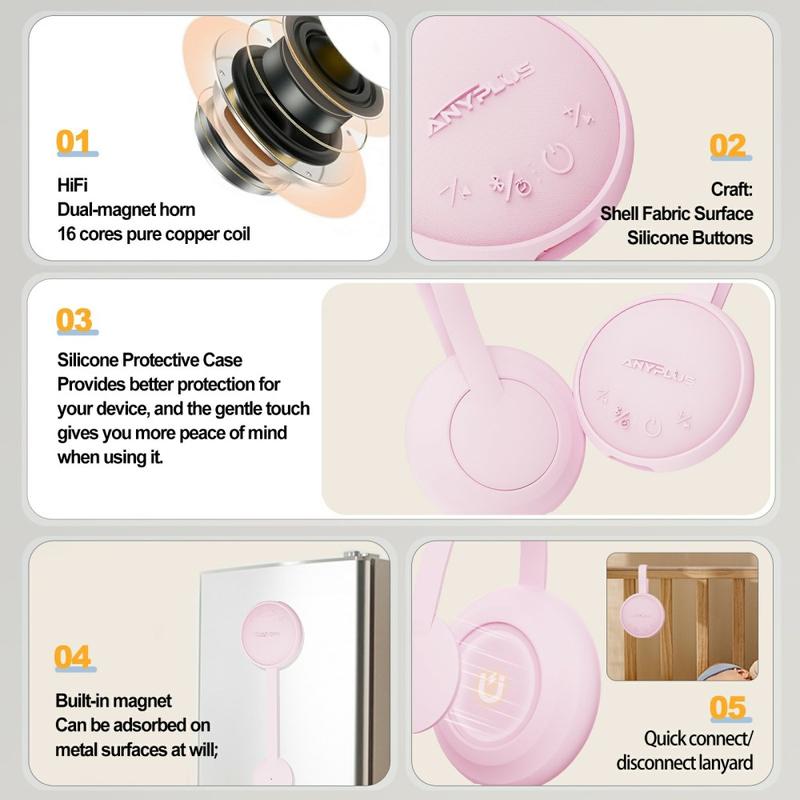 AnyPlus Tragbare Maschine mit weißem Rauschen für Baby schlafen / Bluetooth-Lautsprecher - Rosa