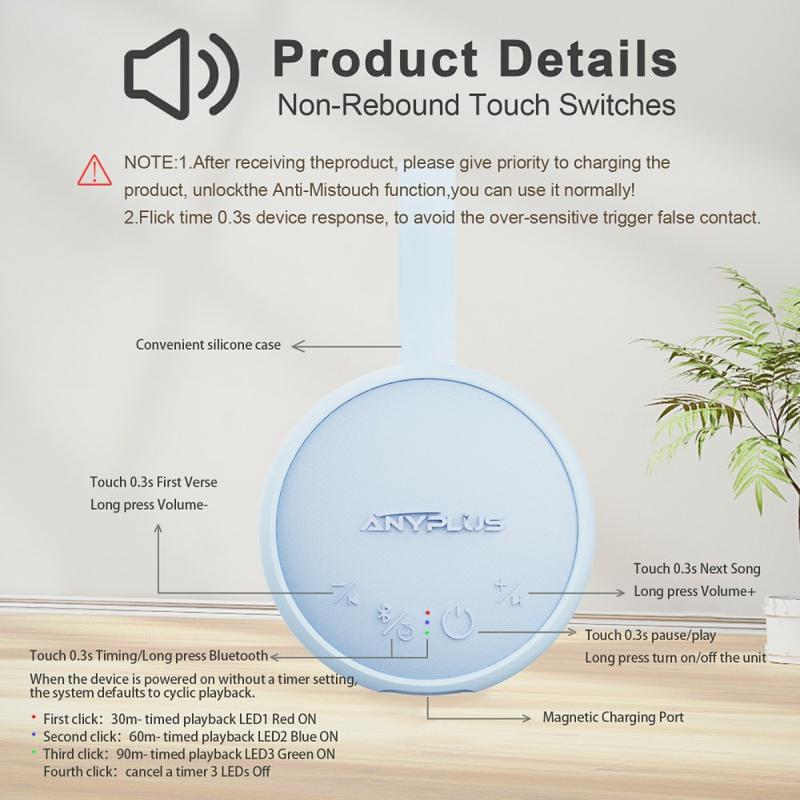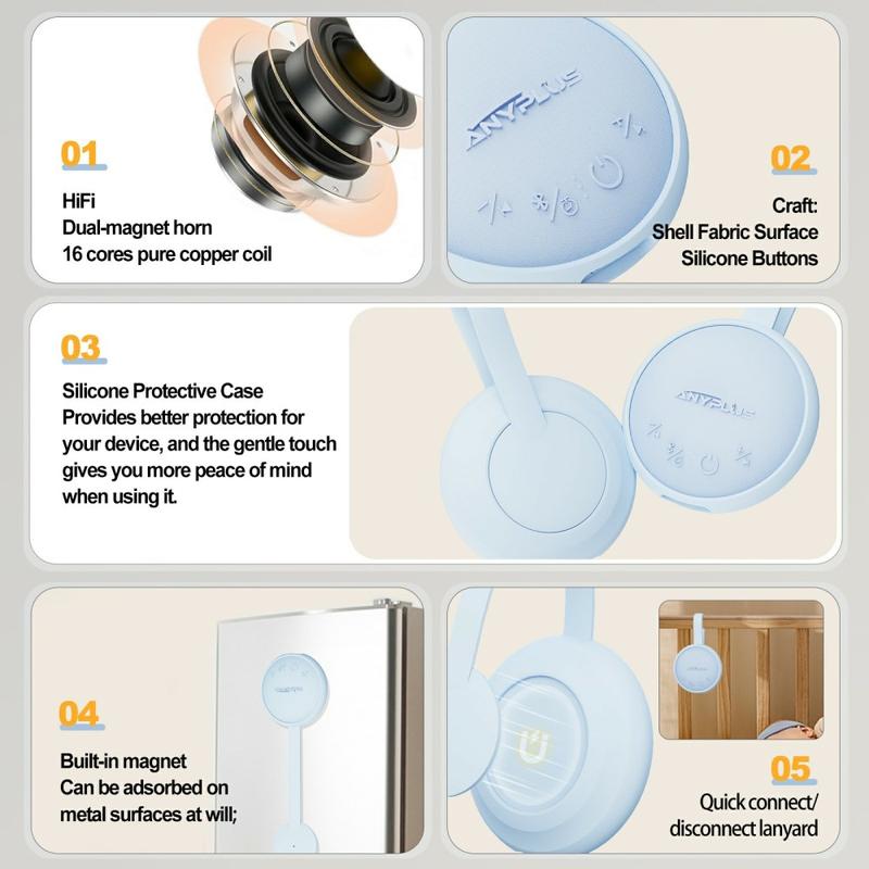• AnyPlus Tragbare Maschine mit weißem Rauschen für Baby schlafen / Schlafhilfe Sound Machine mit Bluetooth-Lautsprecher