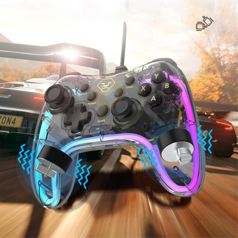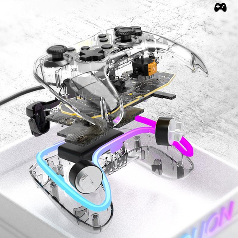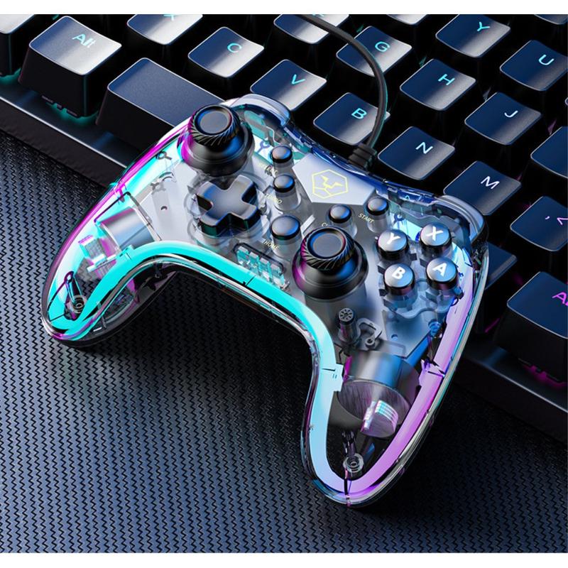 AOLION Für Nintendo Switch Computer Transparent Verkabeltes Gamepad RGB Licht Game Controller