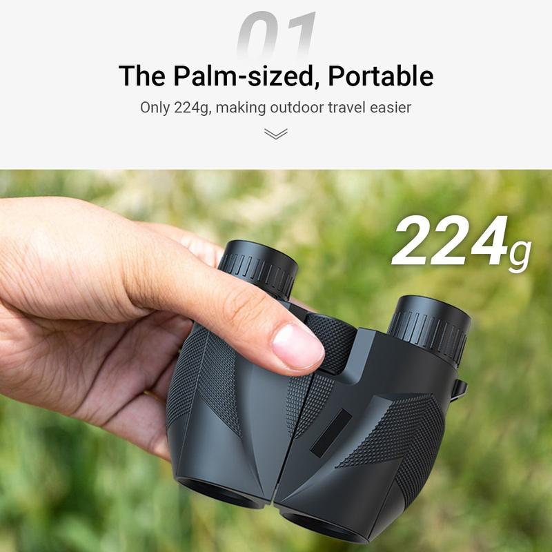 Das APEXEL 10×25 HD-Fernglas kombiniert hochwertige Optik mit einem kompakten, leichten Faltdesign - perfekt für Reisen, Konzerte, Wanderungen, Vogelbeobachtungen und alltägliche Outdoor-Aktivitäten. Mit einem Gewicht von nur 224 g und einer Größe, die in Ihre Handfläche passt, bietet es außergewöhnliche Mobilität, ohne die optische Klarheit zu beeinträchtigen.