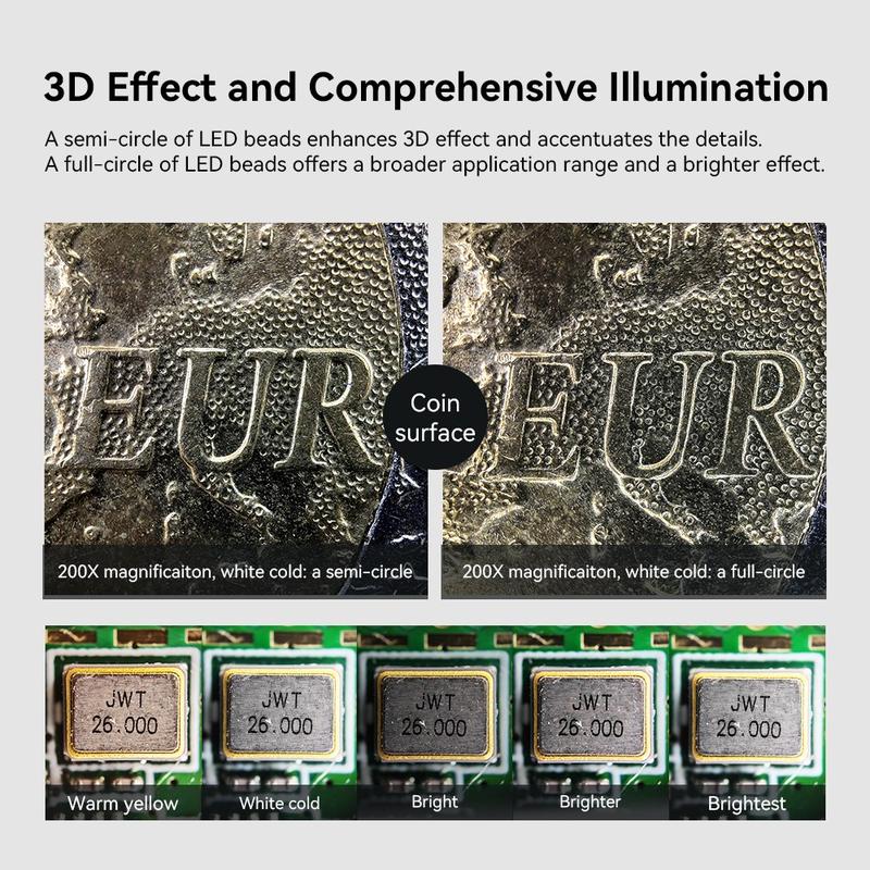 - 100x HD Vergrößerung: Erleben Sie unvergleichliche Details mit der 100-fachen Vergrößerung, die ideal für die Untersuchung von Schmuck, Insekten und anderen kleinen Objekten ist.