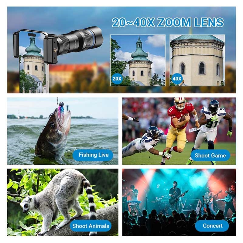 APEXEL HD Metall 20-40x Zoom Teleskop Teleobjektiv Monokular Telefonkamera Objektiv für iPhone Samsung Huawei