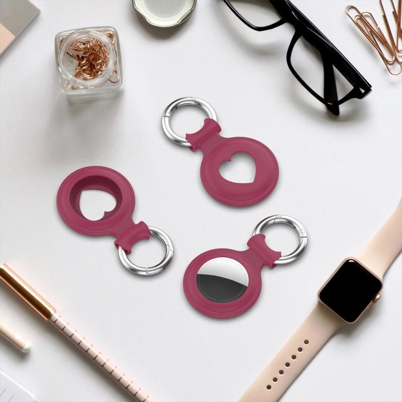 Apple AirTag 1/2 Herz Design Silikonhülle - Weinrot