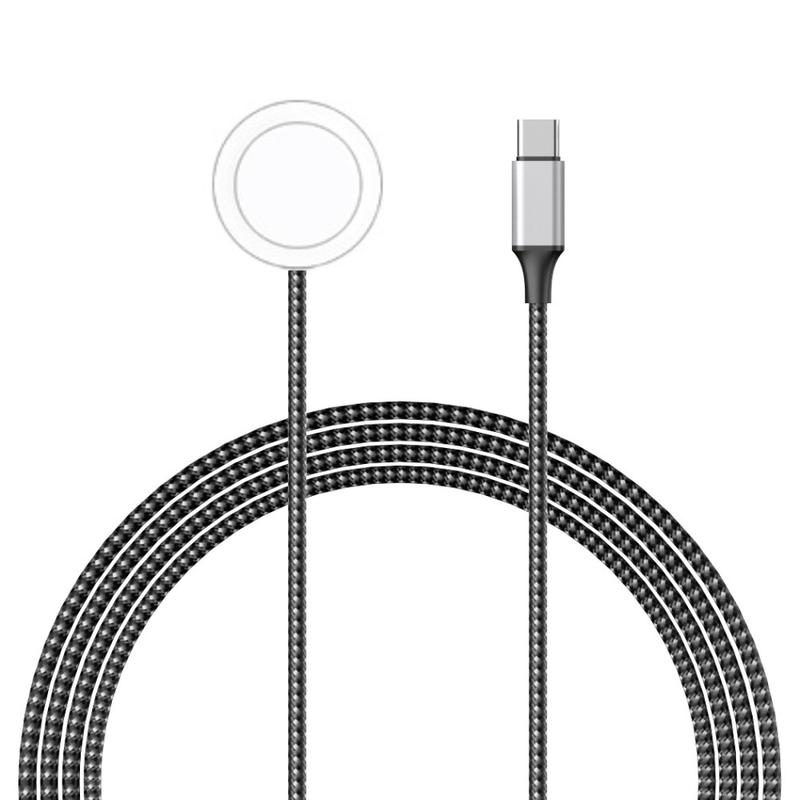 Laden Sie Ihre Apple Watch mühelos mit dem geflochtenen USB-C-Ladekabel. Dieses Ladegerät wurde für Bequemlichkeit und Tragbarkeit entwickelt und verfügt über einen USB-C-Stecker, der sich leicht an jeden USB-C-Anschluss Ihres PCs, Laptops oder Notebooks anschließen lässt. Diese kompakte kabellose Ladestation verfügt über einen stabilen Stromschutz, um die Gesundheit der Batterie zu gewährleisten und die Erwärmung zu reduzieren, und bietet ein hocheffizientes und zuverlässiges Ladeerlebnis für Ihre Apple Watch, egal, wo Sie sich befinden.