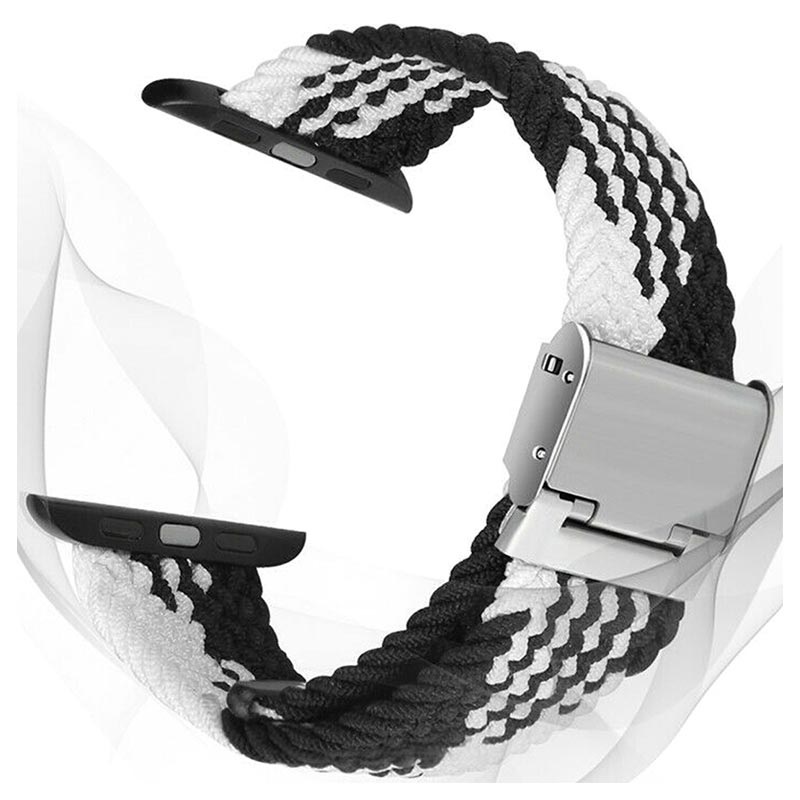 Apple Watch Series Ultra 3/2/Ultra/11/10/9/8/SE 3/(2022)/7/SE/6/5/4/3/2/1 Gestrickter Armband - 49mm/46mm/45mm/44mm/42mm - Schwarz / Weiß