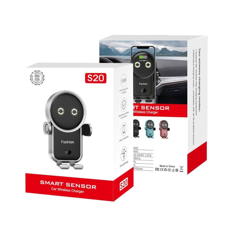 S20 Cute Astronaut Design Wireless Car Charger 15W Fast Charging Car Phone Holder Smart IR Sensor Auto-Clamping Phone Mount for Car Air Vent