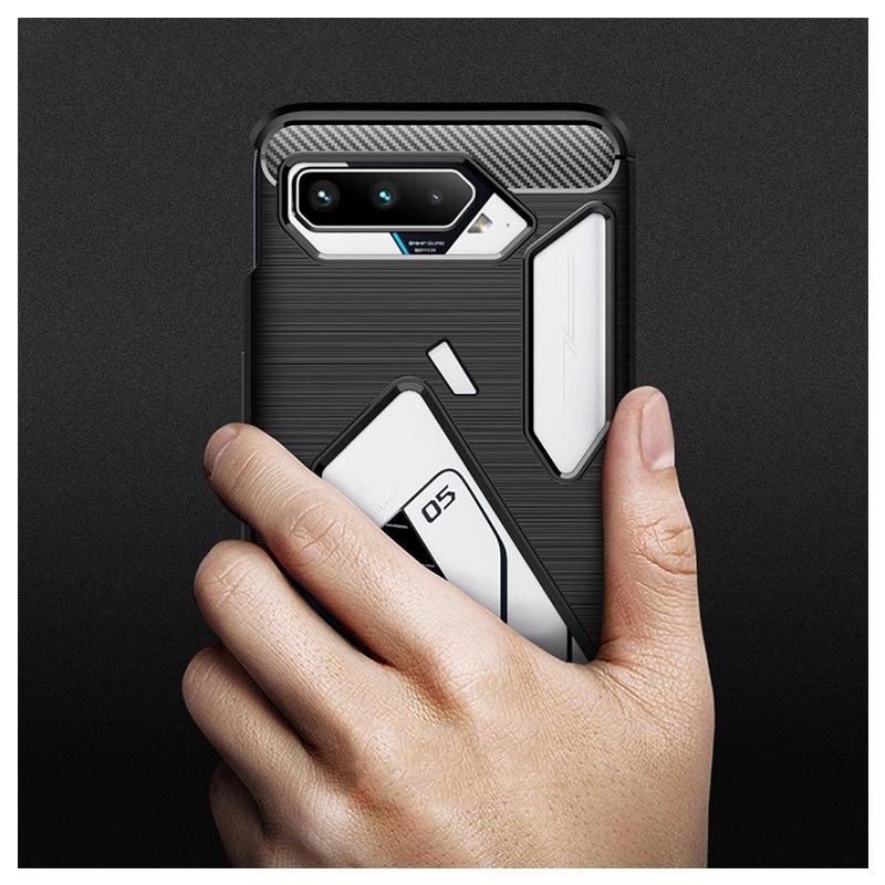 Schützen Sie Ihr Samsung Asus ROG Phone 5 vor unerwünschten Schäden und Stürze mit diesem coolen gebürsteten TPU-Cover ab. Diese flexible Hülle hat schicke Kohlefaser-Akzente, die zum stilvollen und modernen Look Ihres Asus ROG Phone 5 beitragen.
