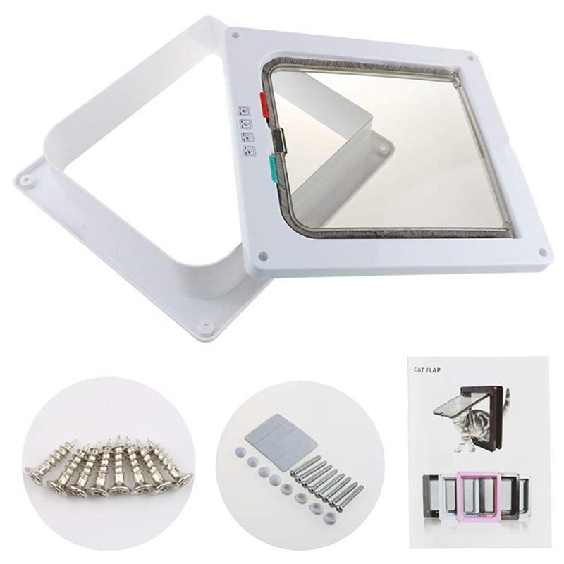 - 4-Way Locking System: Bietet vier Verriegelungsoptionen: "Nur rein", "Nur raus", "Vollständig offen" und "Vollständig verriegelt" - so haben Sie die vollständige Kontrolle über die Bewegungen Ihres Haustiers.