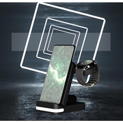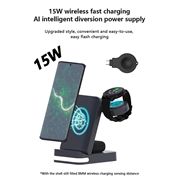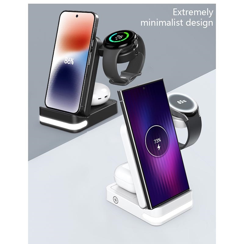 • B-27 3-in-1 faltbares kabelloses Ladegerät mit Nachtlicht - 15W - Schnelles Aufladen für Smartphones, Kopfhörer und Samsung Galaxy Watch