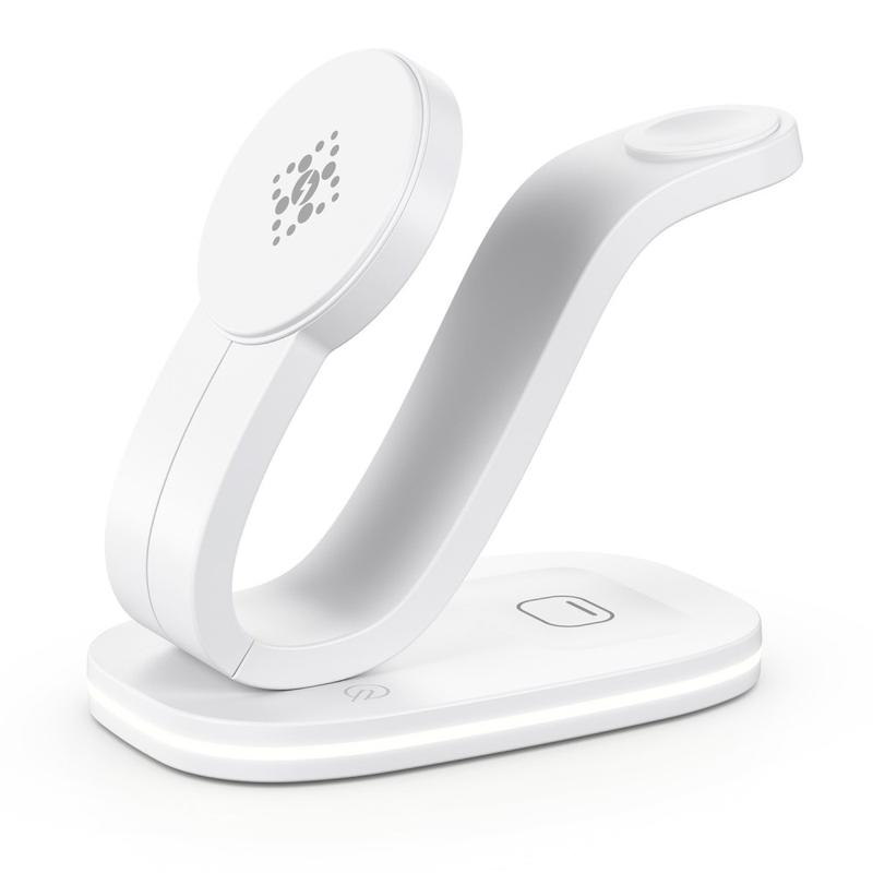 Ein einziger Ständer, der kabelloses Schnellladen mit 15 W ermöglicht, Ihre Smartwatch mit 2 W auflädt, Ihre Ohrhörer mit 3 W versorgt und gleichzeitig als sanftes Nachtlicht dient, sorgt für Ordnung auf dem Schreibtisch.