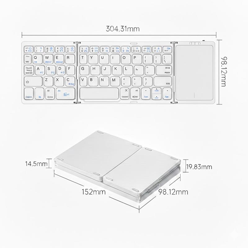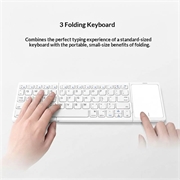 Mit der faltbaren kabellosen Tastatur B089 mit Touchpad können Sie überall bequem arbeiten. Dank ihres schlanken, dreifach faltbaren Designs passt sie problemlos in eine Laptoptasche, während das integrierte Touchpad eine reibungslose Navigation ohne separate Maus ermöglicht. Sie wurde für Smartphones, Tablets und Laptops entwickelt und eignet sich ideal für Reisen, Remote-Arbeit und die tägliche Produktivität.