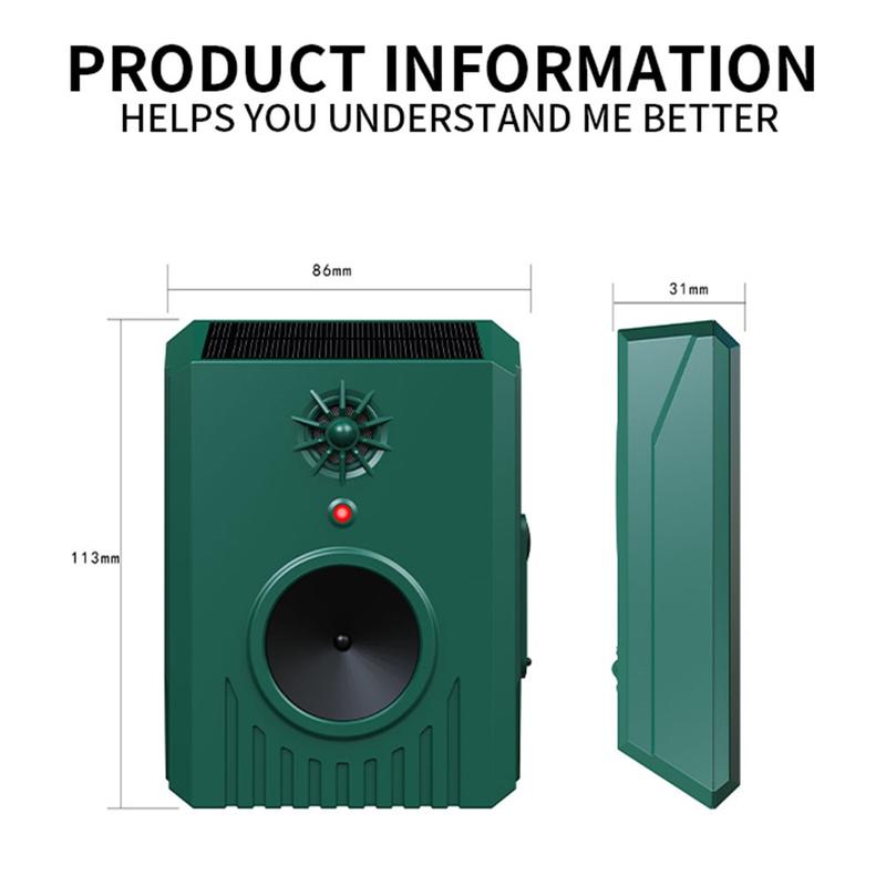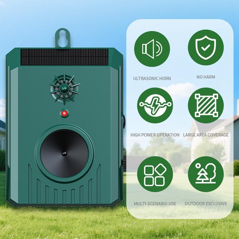 Dieses Ultraschallgerät ist eine chemikalienfreie, geruchlose und haustiersichere Alternative zu schädlichen Pestiziden und eignet sich daher für Haushalte, Gärten und umweltbewusste Nutzer.