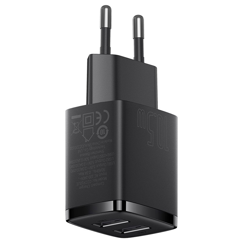 Baseus Kompaktes Wand-Ladegerät mit 2 USB-Anschlüssen - 10.5W - EU-Stecker