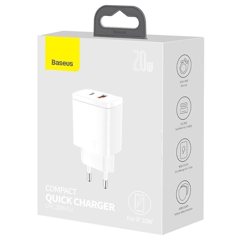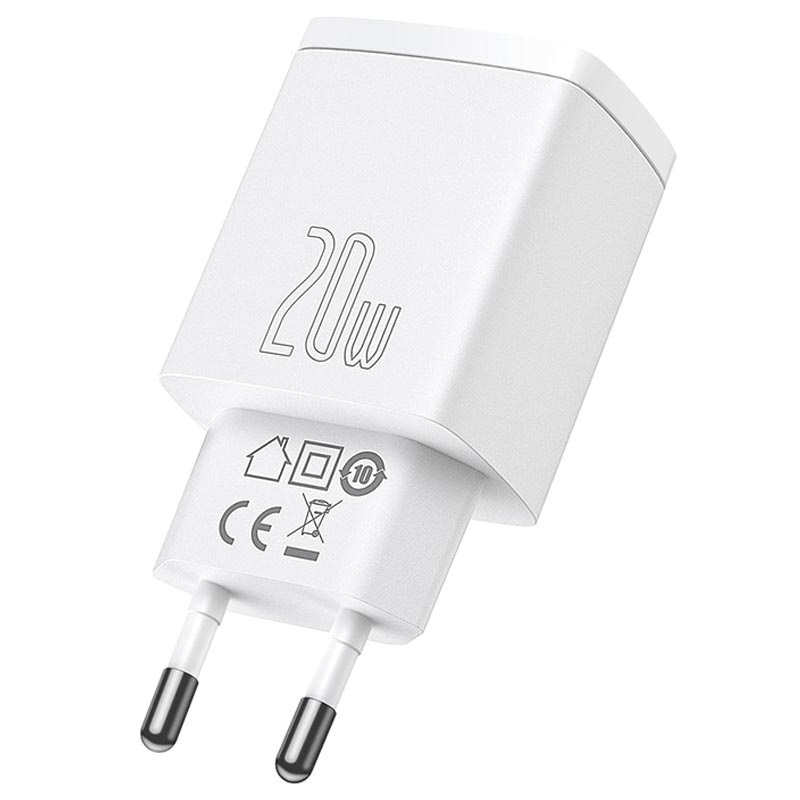 Baseus Compact Wand-Ladegerät 20W - USB-C, USB-A, QC3.0, PD3.0, Apple 2.4, BC 1.2 - EU-Stecker