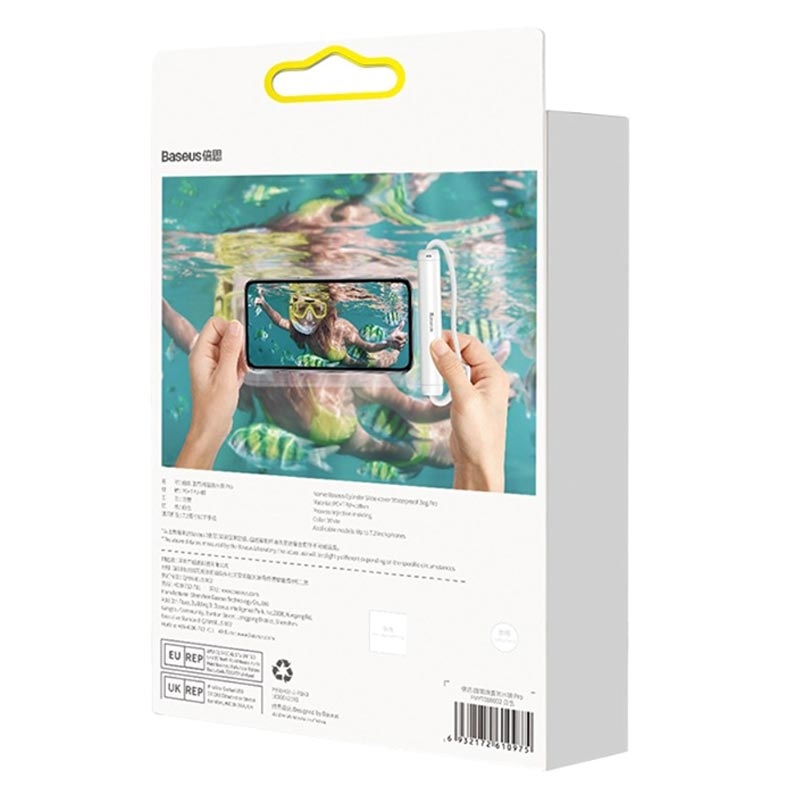 Die wasserdichte Baseus Cylinder Slide Hülle verfügt über ein Baumwollband, mit dem Sie Ihr Handy bequem schwimmen oder tauchen können. Dank der Wasserdichtigkeitsklasse IPX8 bleibt Ihr Handy vollkommen trocken und unbeschädigt.