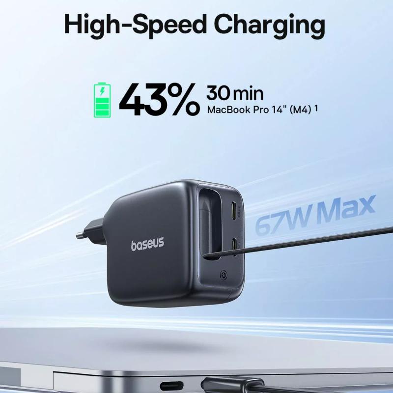 Versorgen Sie Ihre Geräte effizient mit dem Baseus EnerCore CJ11 67W Wandladegerät, das für moderne Laptops, Tablets und Smartphones entwickelt wurde. Dank fortschrittlicher GaN6-Technologie liefert es stabiles Hochgeschwindigkeitsladen bei gleichzeitig niedrigeren Betriebstemperaturen. Das Ladegerät verfügt über drei USB-C-Ausgänge, darunter ein integriertes einziehbares USB-C-Kabel, und bietet eine saubere und übersichtliche Ladelösung für zu Hause, im Büro oder auf Reisen.