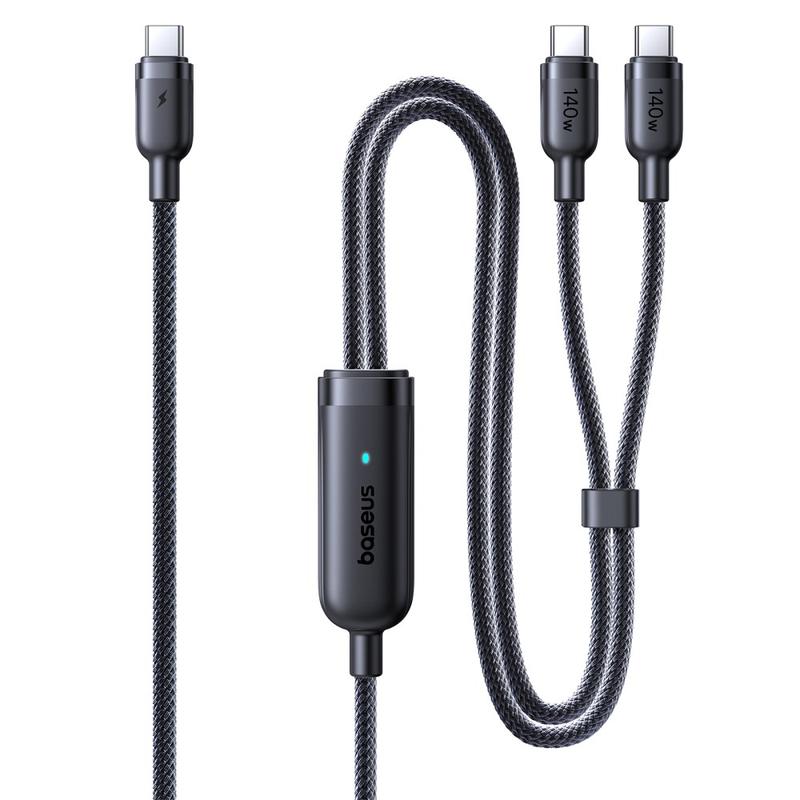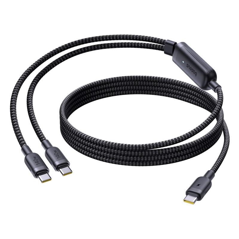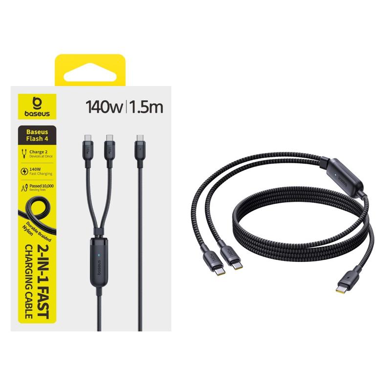 Baseus Flash 4 2-in-1 USB-C-auf-Dual-USB-C-Schnellladekabel, 1,5 m - PD 3.1, 140 W, Ladekabel für mehrere Geräte mit Kabelhalterung