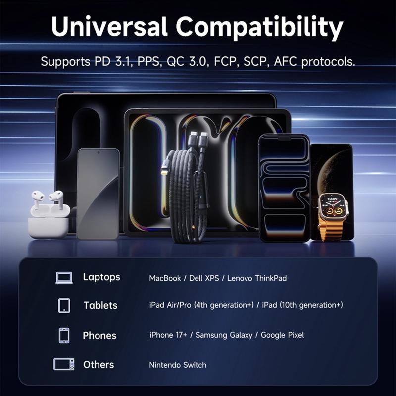 - Kompatibel mit vielen USB-C-Geräten, darunter MacBook, Dell XPS, Lenovo ThinkPad, iPad, iPhone der Serien 15/16/17, Samsung Galaxy, Google Pixel und Nintendo Switch