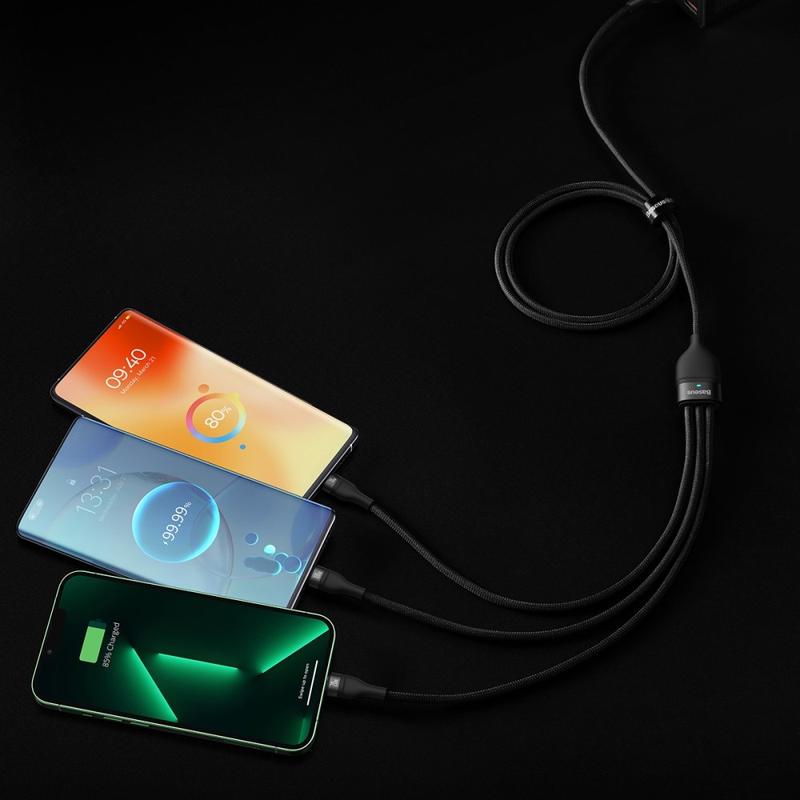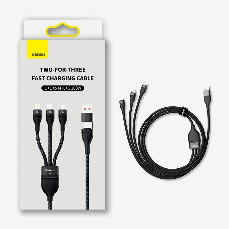 Baseus Flash Series II 100W 3-in-2-Schnellladekabel - 1.2m - USB-A- und USB-C-Eingang zu USB-C Lightning und Micro-USB, nylonummantelt
