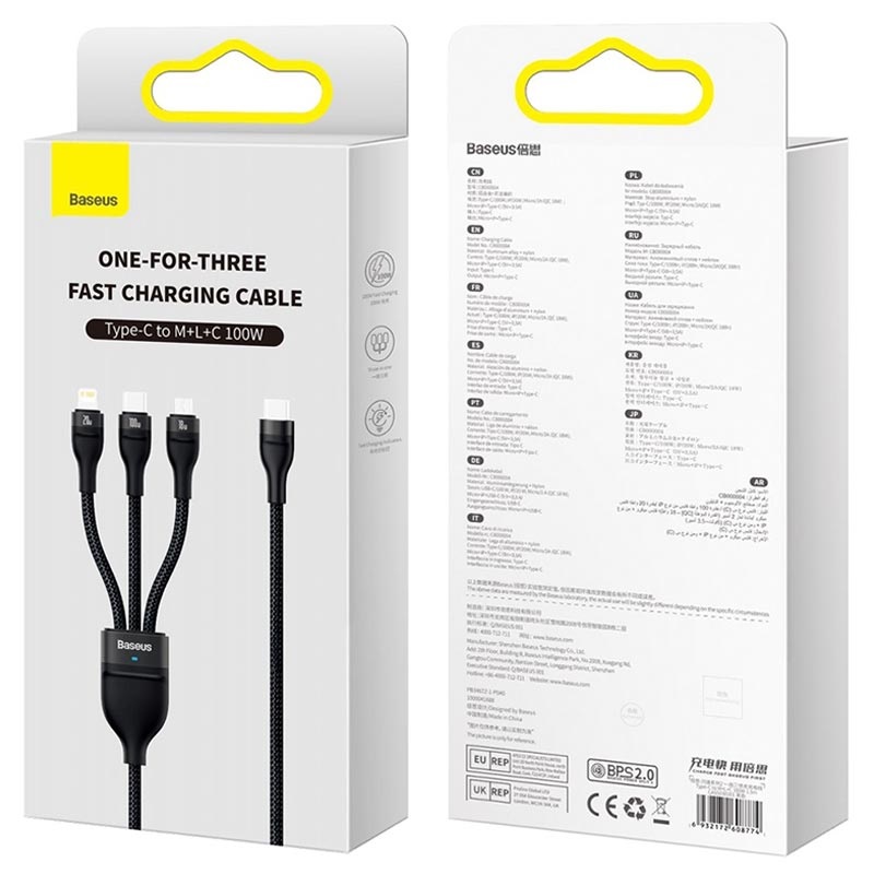 • Baseus Flash Series II 3-in-1 Schnellladekabel - Lightning, USB-C, microUSB - 100W, 1.5m