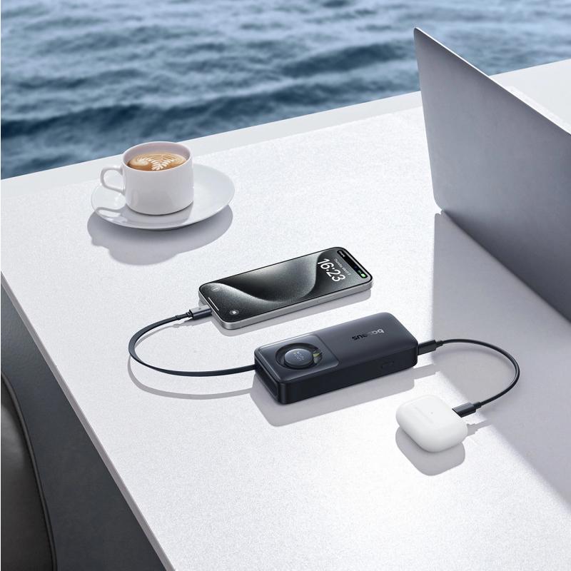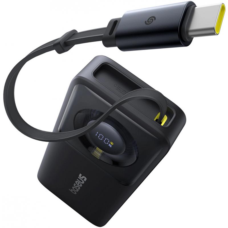 • Baseus Free2Pull 10000mAh Power Bank mit USB-C Kabel - 30W PD Fast-Charge mit 70 cm ausziehbarem USB-C Kabel & Dual-Device Ausgang