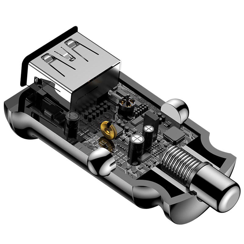 Das Baseus Grain Dual-USB-Autoladegerät verfügt außerdem über einen integrierten Smart-Chip, der automatisch die erforderliche Leistung erkennt und zuweist. Mit diesem kleinen, aber leistungsstarken Autoladegerät können Sie Ihr Gerät vollständig sicher und schnell aufladen.