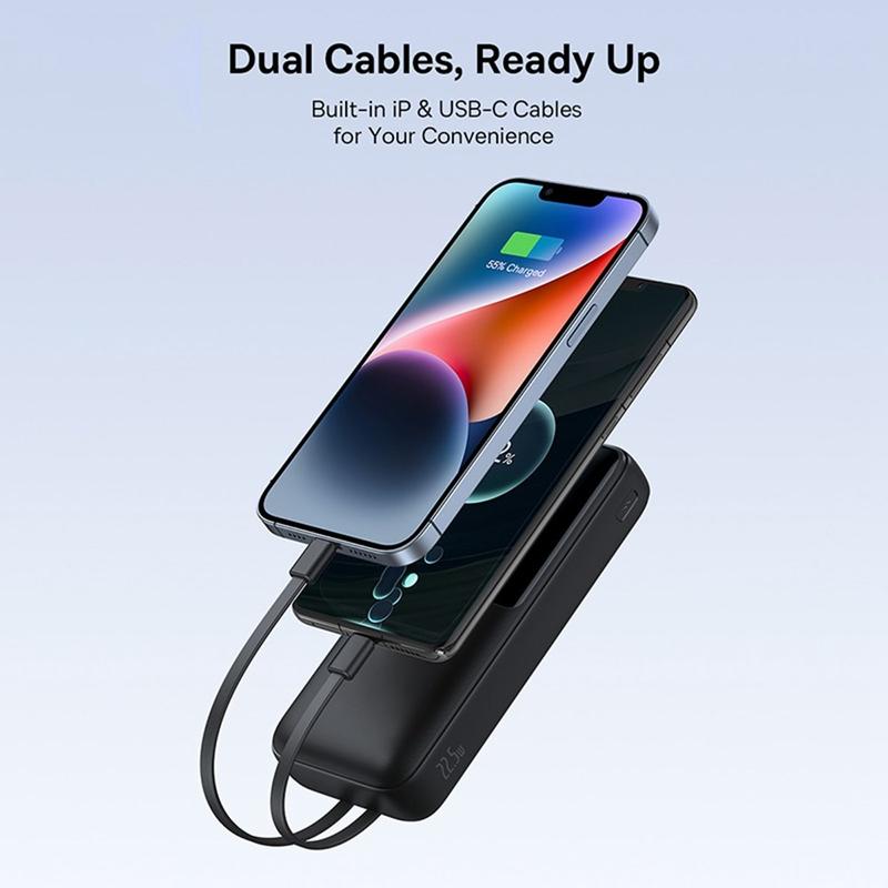 Powerbanks mit integrierten Kabeln machen das Mitführen von zusätzlichen Kabeln überflüssig und sind damit ein ideales Zubehör für Vielreisende und technisch versierte Nutzer. Mit der 22,5-W-Schnellladefunktion können Sie Zeit sparen und Ihre Geräte effizient aufladen.