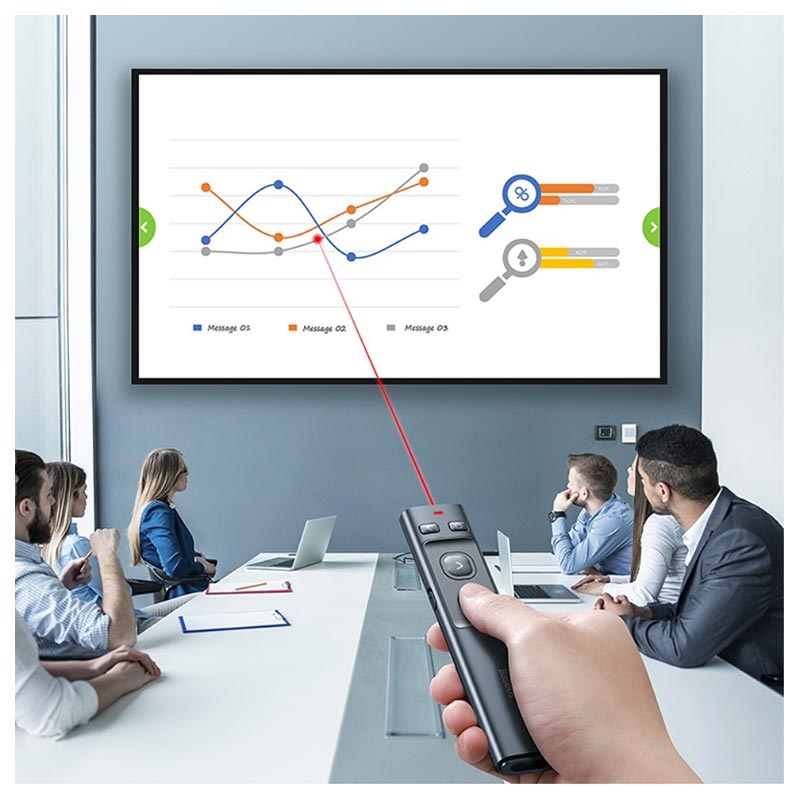 Der Baseus Orange Dot Wireless Presenter verfügt über einen eingebauten Laserpointer und Tasten, so dass Sie Ihre Präsentation einfach steuern können. Mit einer Reichweite von 100 m ist er perfekt für große Veranstaltungsorte geeignet. Der Baseus Orange Dot Wireless-Präsenter ist eine ausgezeichnete Wahl für Lehrer, Professoren und Moderatoren von Meetings.