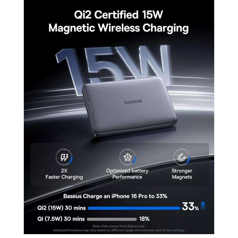 Baseus PicoGo AM41 Ultradünne Qi2 magnetische kabellose Powerbank 10000mAh - 27W