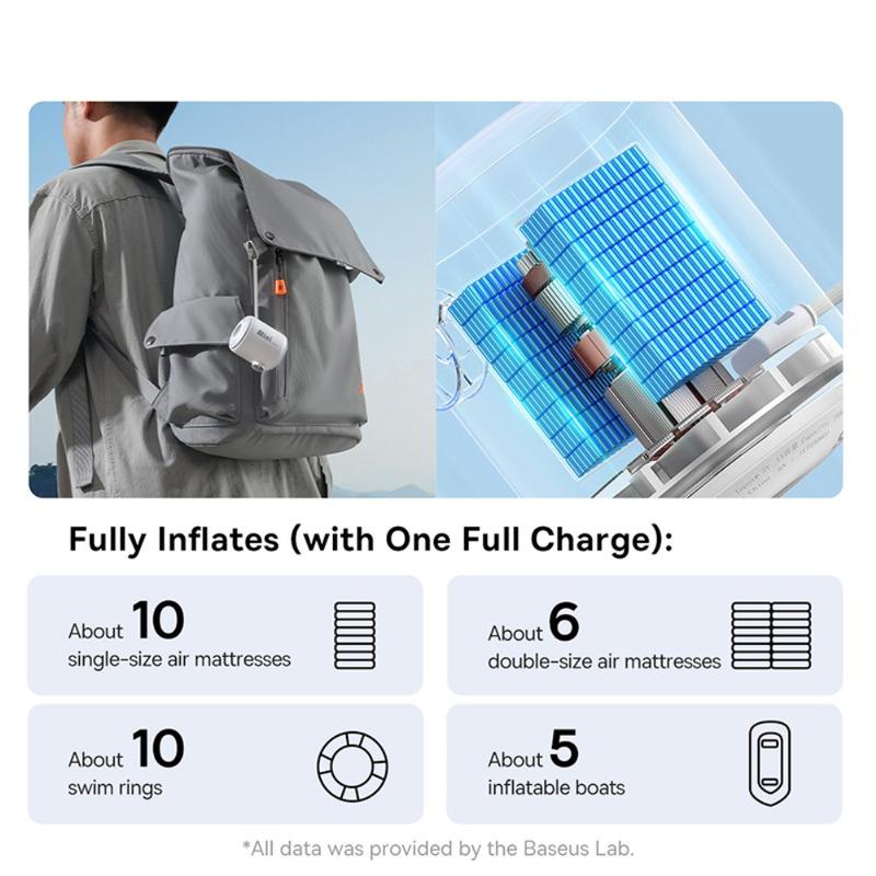 Baseus PocketGo Tragbare Luftpumpe mit 2-in-1 Aufblas-/Luftablassfunktion
