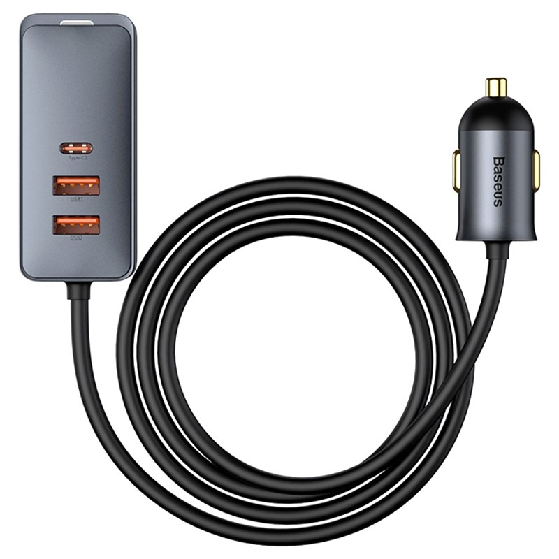 - Teilen Sie sich das PPS-Multi-Port-Schnellladegerät für das Auto mit einem Verlängerungskabel von Baseus.